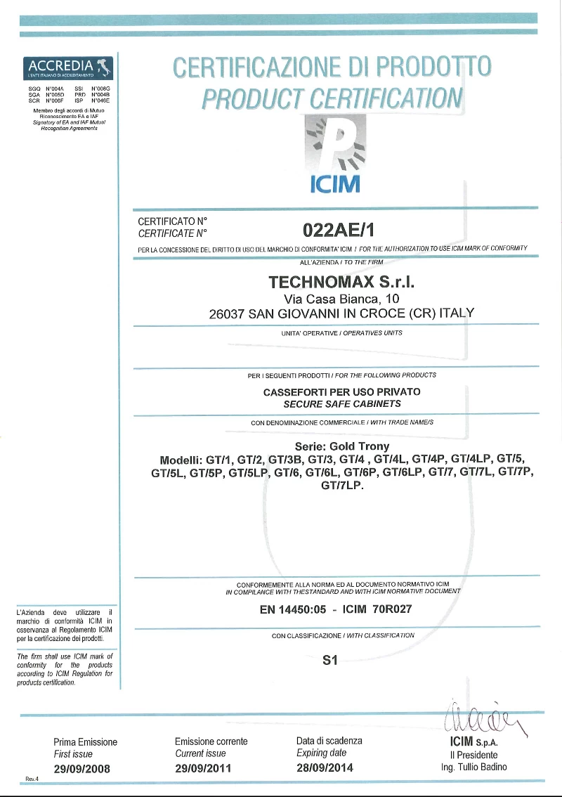 Сейфы серии Technomax отличаются превосходным качеством и известны своей надёжностью; об этом свидетельствуют европейский сертификат EN 14450 и российский ГОСТ Р 50862-2012. В домашних условиях предпочтительно держать в нём ценности на сумму не более трёх млн. рублей, и до восьмисот тысяч рублей – для юридических лиц.
